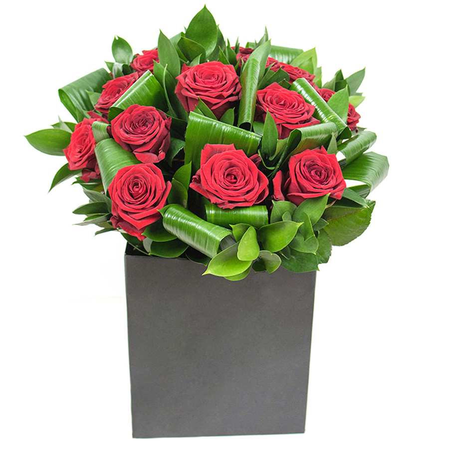 Our elegant red rose bouquet is a perfect blend of beauty and sophistication, designed to brighten any home with its vibrant colors and stylish arrangement.
